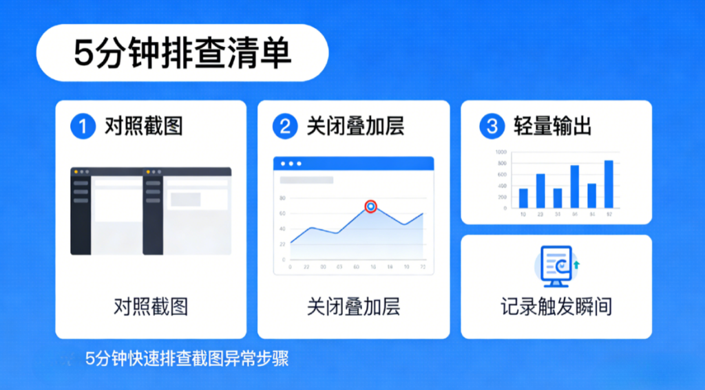 • ✅ 先做对照:系统截图与截图工具各测一次,锁定问题层级