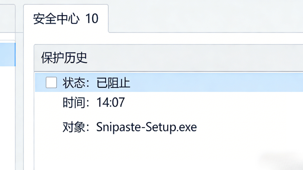 - 双击后无窗口,但安全软件历史记录里出现一条“已阻止”。